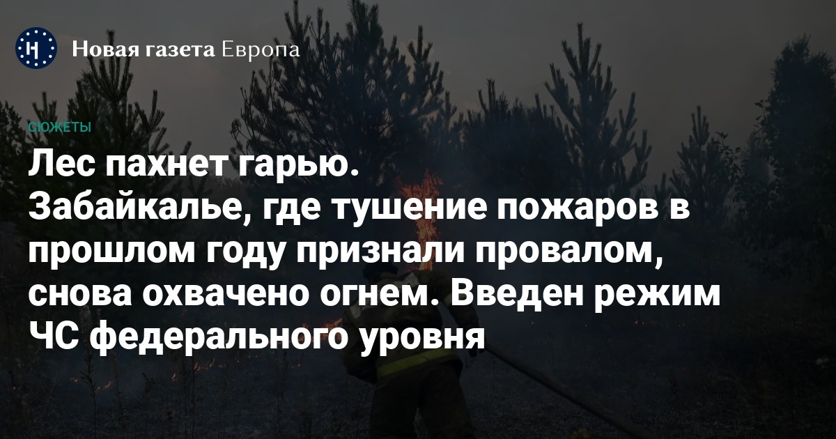 23 апреля в регионе ввели режим ЧС федерального уровня, а через пять дней, 28 апреля, уволился глава пожарной безопасности Забайкалья Ринат Хисматулин. Похоже, чиновник не стал ждать конца мая — именно в это время в прошлом году отправили в отставку главу регионального Минприроды Сергея Немкова. Тогда причиной стала неготовность Забайкалья к лесным пожарам и сокрытие данные о масштабах распространения огня, пояснили причину увольнения в Рослесхозе.