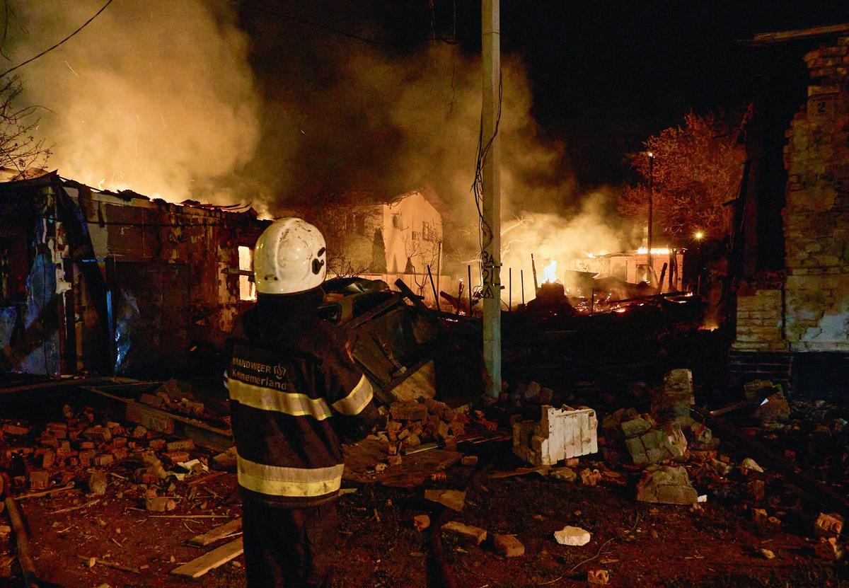 Ukrainian rescue workers at the site of a drone strike in Kharkiv, Ukraine, 29 April 2025. Photo: EPA-EFE/SERGEY KOZLOV