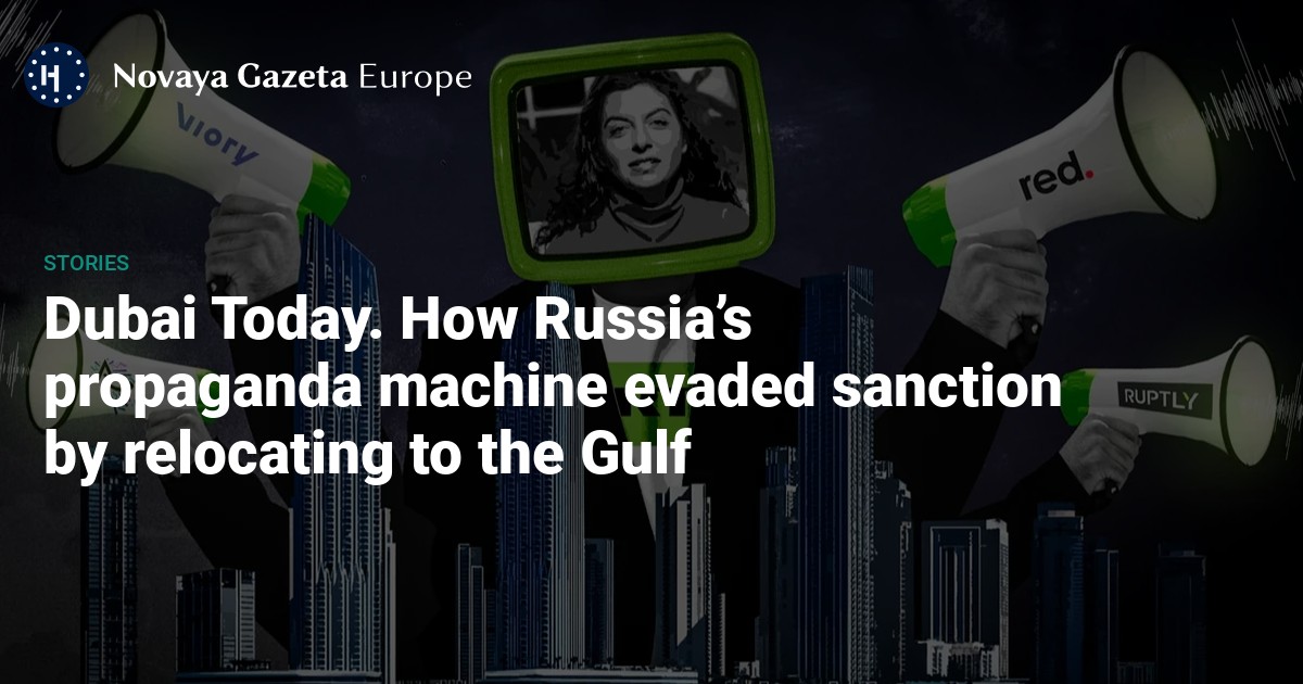 After Russia invaded Ukraine in 2022, the state television channel RT — formerly Russia Today — was sanctioned by the United States, the United Kingdom, and the European Union. Major distributors around the world dropped the channel, and its social media accounts were suspended. Many RT employees were laid off and forced to leave Western countries. So how is it that, three years later, the Kremlin’s chief mouthpiece is still broadcasting its message to the world? The United Arab Emirates (UAE), which now serves as RT’s financial and organisational hub of operations, has allowed the organisation to continue disseminating Russian propaganda to Western audiences. In a new investigation, Novaya Gazeta Europe has uncovered a clandestine network of projects and efforts aimed at circumventing sanctions.