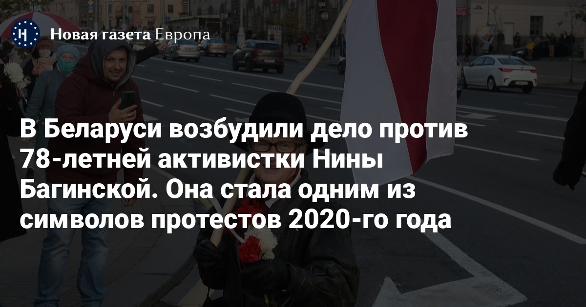 Нина Багинская стала одним из символов протестов, которые начались в Беларуси после президентских выборов 2020 года. Женщина выходила на акции и митинги с бело-красно-белой символикой, из-за чего силовики неоднократно задерживали протестующую.