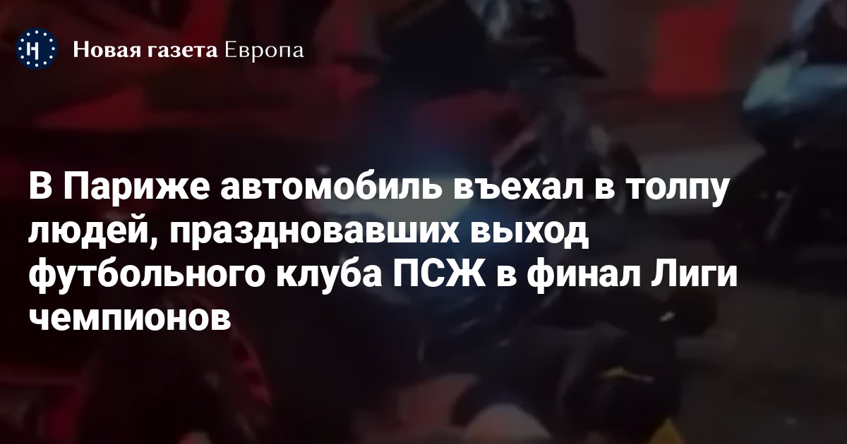 В ночь на 8 мая в Париже автомобиль въехал в толпу людей, праздновавших выход футбольного клуба ПСЖ в финал Лиги чемпионов. Об этом сообщает Le Parisien.