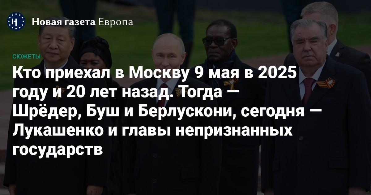 «Новая газета Европа» вспоминает, как выглядел список гостей на параде Победы в 2005 году, и перечисляет, кто из зарубежных лидеров посетил российскую столицу спустя 20 лет.