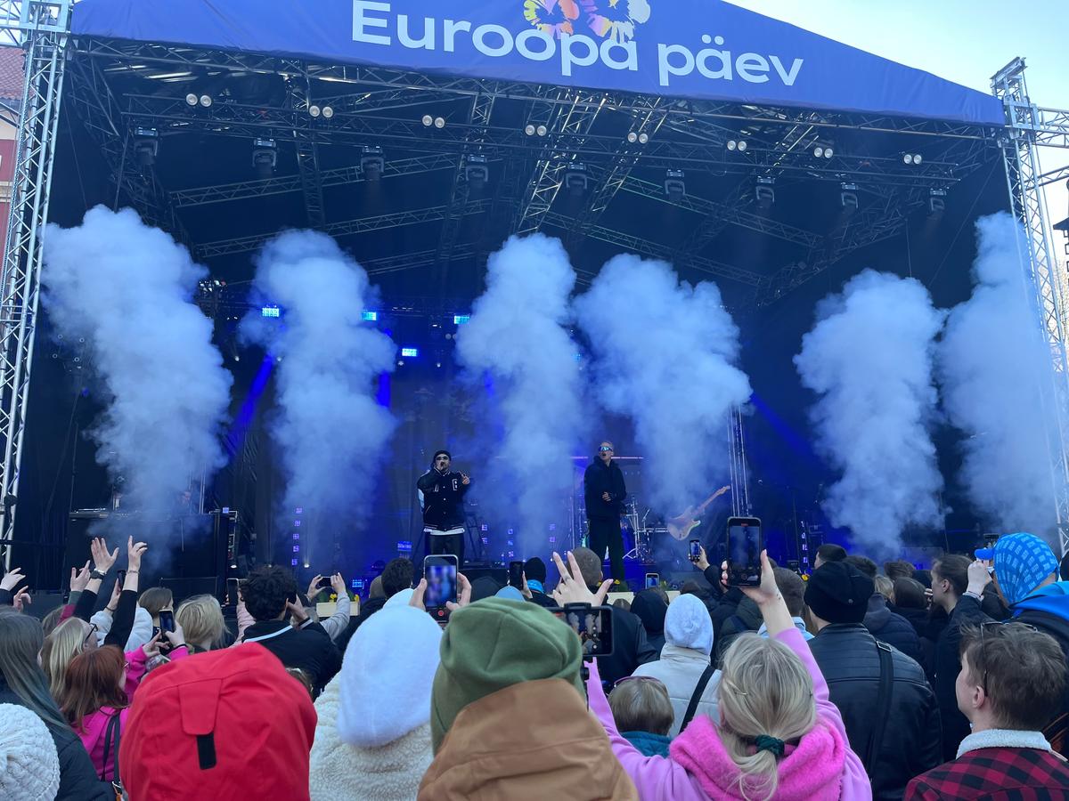 The Europe Day organisers seemed to opt for acts appealing to a wider audience. Anne Veski, a 69-year-old pop singer and nublu, one of Estonia’s most popular rappers, took to the stage. Both singers perform mostly in Estonian but also have Russian language songs in their catalogues.