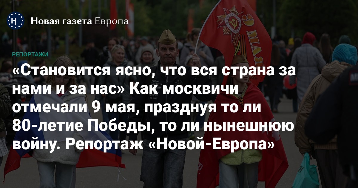 Московская мэрия еще в апреле начала готовиться к празднованию 9 мая. Месяц назад по всему городу начали вешать плакаты с памятником «Родина-мать зовет!», лозунгами «Гордимся» и «1945–2025. Победа будет за нами!» Юбилей победы город встретил широко: концертом с участием Шамана и Олега Газманова, парадом, который транслировался в метро и на остановках, военно-патриотическими мероприятиями для детей. Корреспондент «Новой-Европа» прогулялся по центру столицы и поговорил с празднующими.
