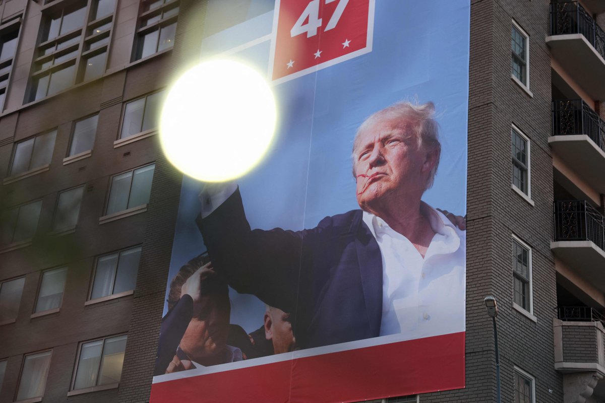 Баннер с фотографией Трампа на здании Heritage Foundation в преддверии инаугурации, 17 января 2025 года. Фото: Kayla Bartkowski / Getty Images / AFP / Scanpix / LETA