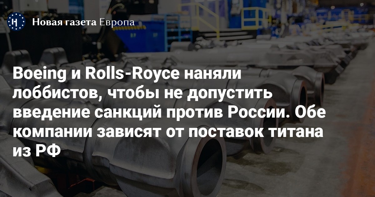 До начала полномасштабного российского вторжения в Украину компания Boeing получала примерно треть необходимого ей титана из РФ, Rolls-Royce — около 20%.