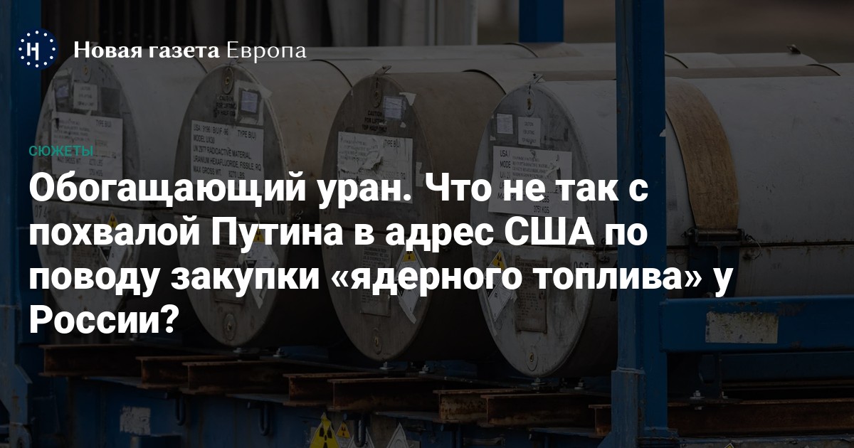 Российский диктатор напутал со стадиями атомного топливного цикла: Россия поставляет в США не само ядерное топливо, а то, из чего оно производится, — обогащенный уран. Его экспорт в эту страну, по данным международной экологической организации «Беллона», в 2024 году упал вдвое и в денежном, и в натуральном выражении: до 0,6 млрд долларов или 335 тонн. При этом на США приходится примерно половина уранового экспорта российского атомного госконцерна. Еще примерно столько же покупает Евросоюз, который одобрения Путина не удостоился: ведь там нет Трампа и хвалить некого.
