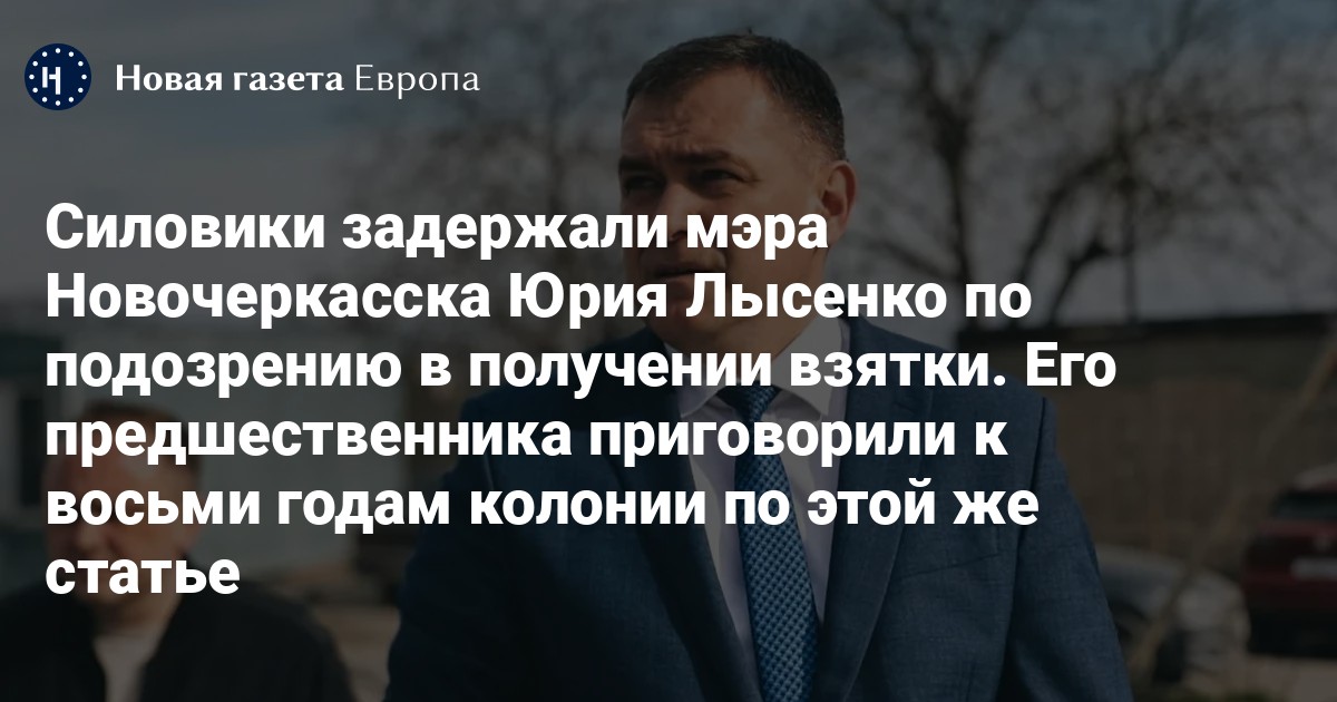 Сотрудники ФСБ задержали мэра Новочеркасска Юрия Лысенко по подозрению в получении взятки (ст. 290 УК). Об этом сообщил «Коммерсант» со ссылкой на правительство Ростовской области.