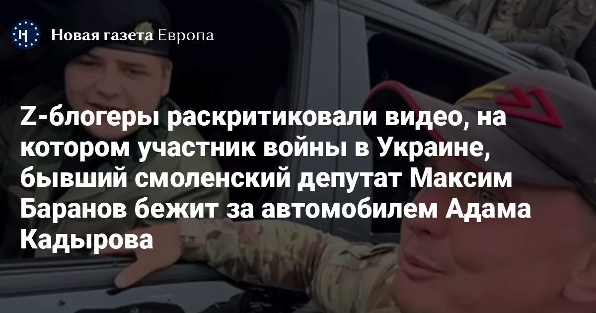 Бывший депутат смоленского горсовета, участник войны в Украине Максим Баранов опубликовал в своем телеграм-канале видео, на котором он бежит рядом с автомобилем сына главы Чечни Адама Кадырова. Внимание на эти кадры обратили Z-блогеры.
