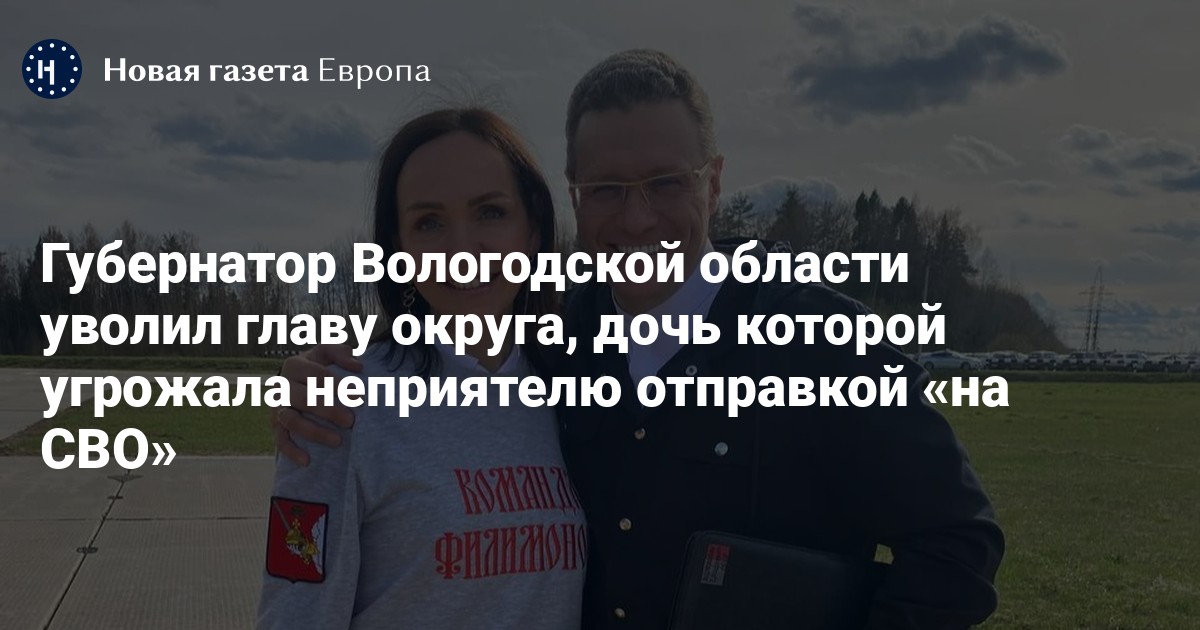 «Глава Нюксенского муниципального округа Ю.П.Шевцова отправляется в отставку, ввиду ценностной несовместимости проступка дочери с правилами, принципами и идеологией работы команды правительства Вологодской области», — сообщил Филимонов, добавив, что принял такое решение «по итогам прагматичного и объективного анализа ситуации».