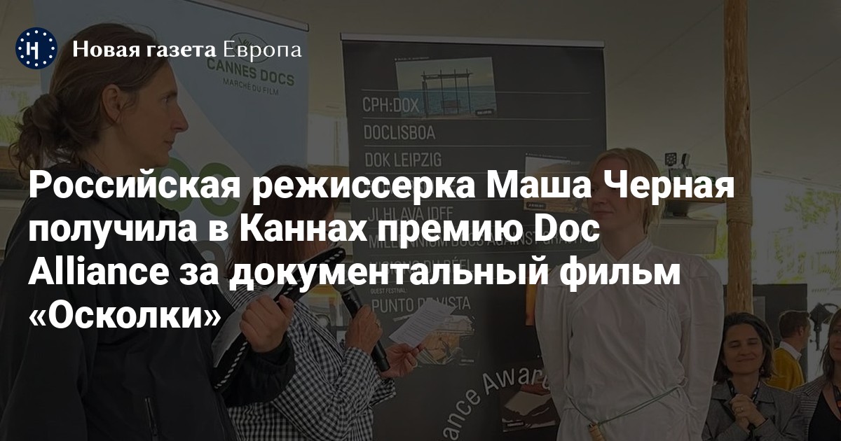 Российская режиссерка неигрового кино Маша Черная получила в Каннах премию Doc Alliance за документальный фильм «Осколки». Об этом говорится на сайте премии.