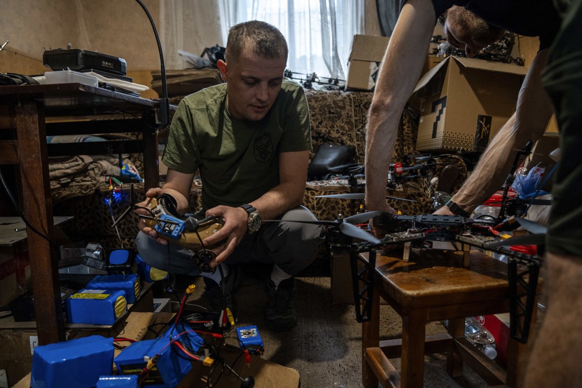 Украинские военнослужащие за работой в центре сборки FPV-дронов в Донецкой области, 14 мая 2025 года. Фото: Jose Colon / Anadolu / Abaca / Vida Press