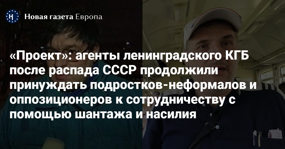 Двое агентов ленинградского КГБ после распада Советского Союза продолжили внедряться в сообщества оппозиционеров и неформальных подростков, а также вербовать активистов с помощью шантажа и насилия, в том числе, сексуализированного. Об этом говорится в расследовании «Проекта».