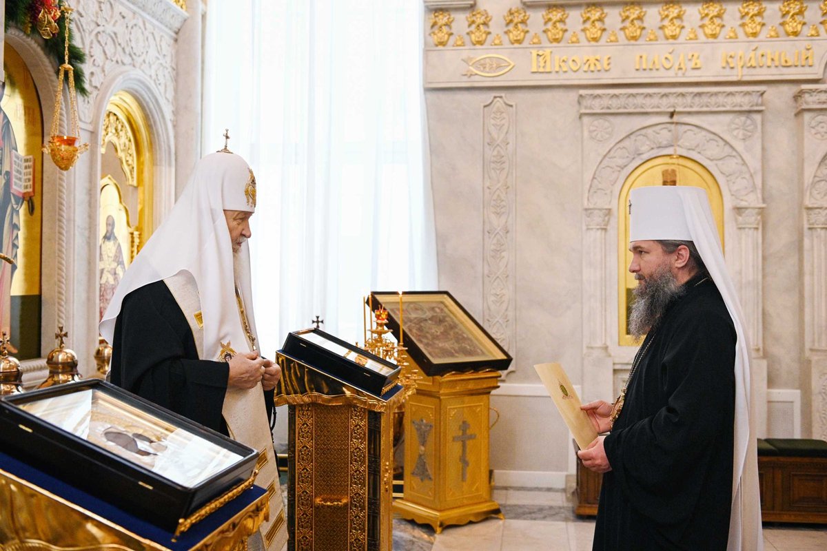 Патриарх Кирилл (Гундяев) и митрополит Евгений (Кульберг), 2020 год. Фото: Сергей Власов / пресс-служба РПЦ
