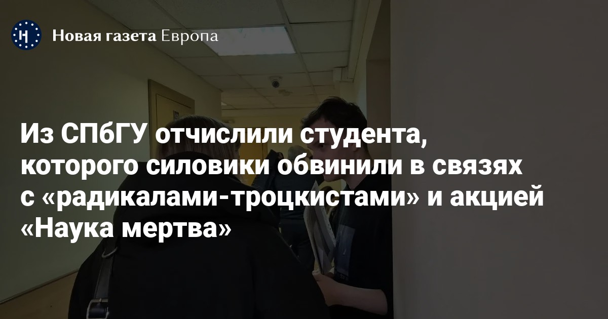 Со второго курса бакалавриата факультета политологии СПбГУ отчислили Артёма Пронько, которого полицейские обвинили в связях с «леворадикальной группой “Рабочая власть”». Об этом пишет «Бумага» со ссылкой на приказ университета.
