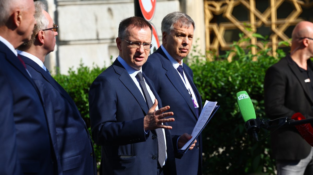 Министр обороны Украины Рустем Умеров (слева) делает заявление в рамках второй встречи российской и украинской делегаций на переговорах в Стамбуле, Турция, 2 июня 2025 года. Фото: Erdem Sahin / EPA