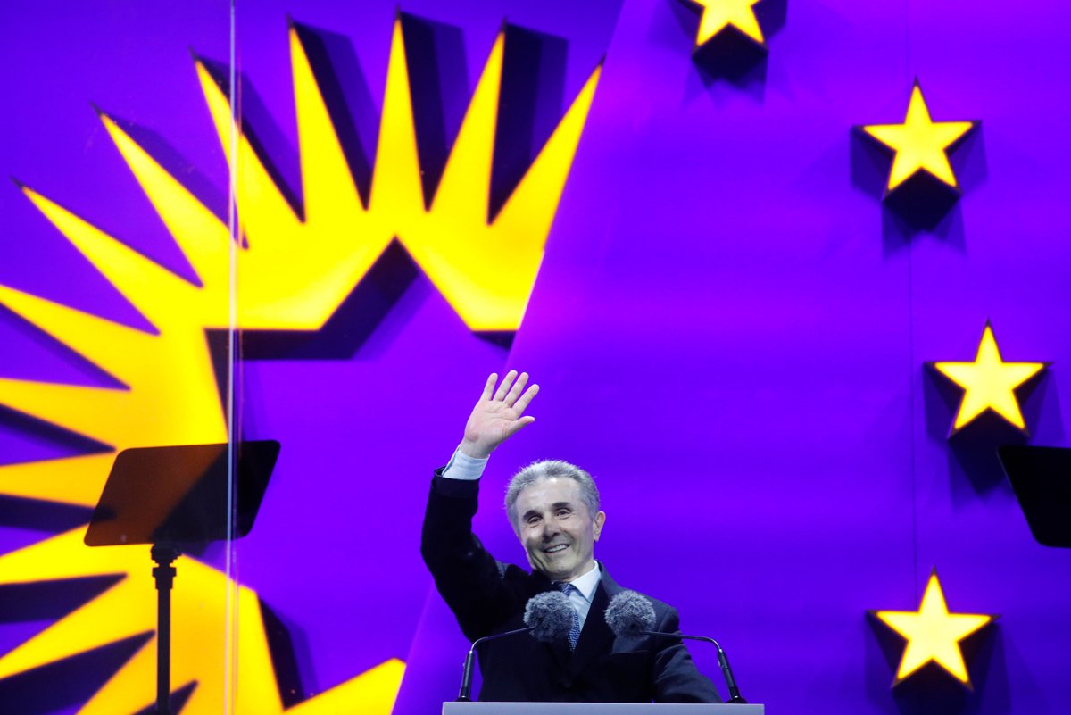 Бидзина Иванишвили выступает на предвыборном митинге «Грузинской мечты» в Тбилиси, 23 октября 2024 года. Фото: David Mdzinarishvili / EPA