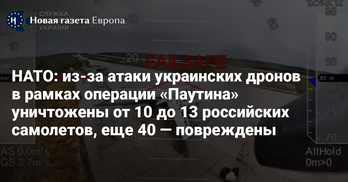 В результате операции Службы безопасности Украины (СБУ) «Паутина» уничтожены от десяти до 13 российских самолетов, еще 40 — повреждены. Такие данные разведки привел высокопоставленный представитель НАТО, передала «Медуза».