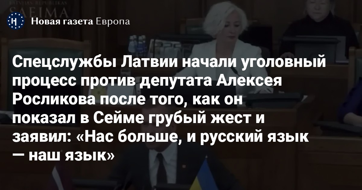 Служба госбезопасности (СГБ) Латвии начала уголовный процесс против депутата Сейма (парламента), лидера партии «Стабильность» Алексея Росликова после его реплики на русском языке во время заседания Сейма. Об этом агентству LETA сообщили в пресс-службе ведомства.