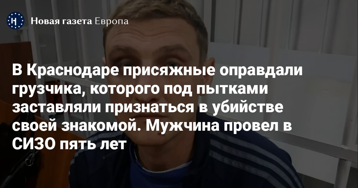 В Краснодаре присяжные заседатели оправдали грузчика Евгения Скиданова, который находился в СИЗО с 2019 года по обвинению в убийстве своей знакомой. О вердикте сообщила «Команда против пыток».