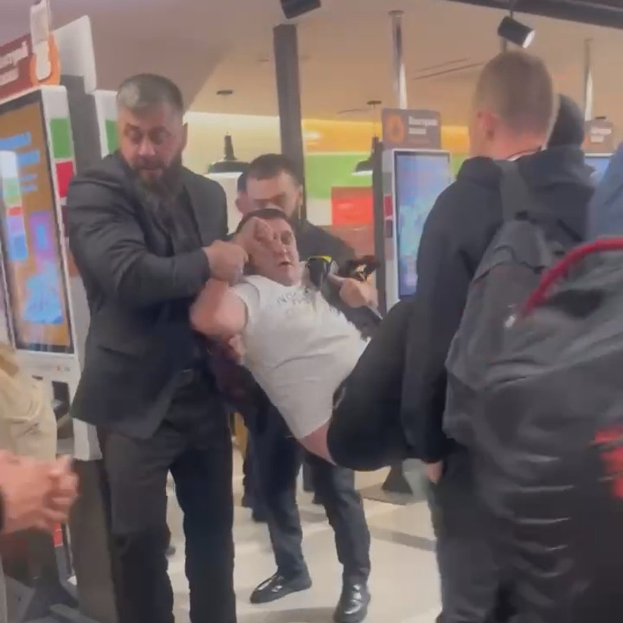 Чеченцы несут Арега Щепихина в здании Ярославского вокзала, 3 июня 2025 года. Скриншот из видео: Varlamov News / Telegram