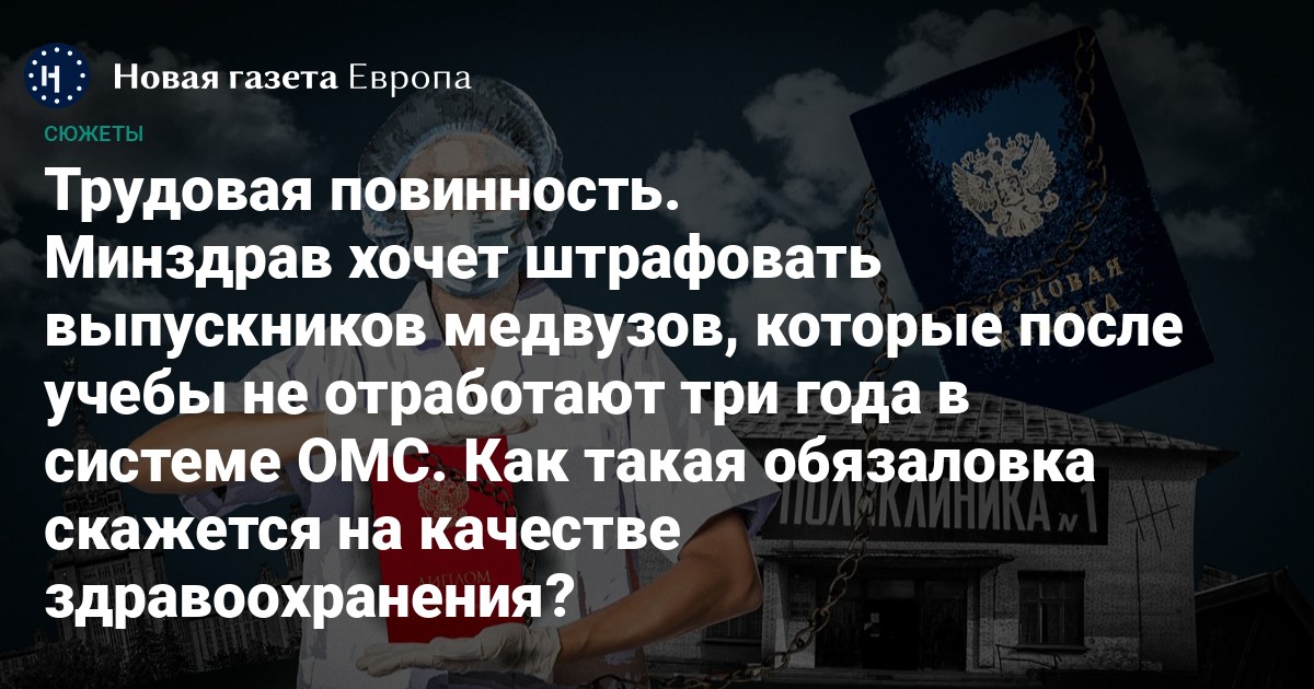 В мае Минздрав опубликовал новый законопроект: выпускников медвузов хотят обязать отрабатывать три года после окончания учебы в медицинских учреждениях, оказывающих помощь по системе ОМС. Речь идет только о тех, кто получил образование за счет бюджета: федерального, регионального или местного. Если документ примут, изменения вступят в силу в ускоренном порядке — с 1 января 2026 года. Нынешние студенты надеются, что их нововведение уже не коснется. Врачи предупреждают: скорее всего эта мера только усилит дефицит кадров.