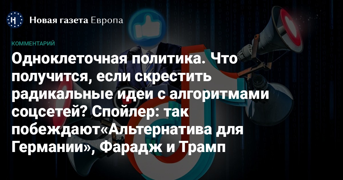 Но если оглянуться вокруг, то хорошо видно, что форма и содержание, средства и цель тесно связаны. Радикализация и способы ее достижения — едины. TikTok, безусловно, предоставляет удобную платформу для нового способа производства и потребления информации. Однако многие политики справляются с тактикой сеяния посредством других социальных медиа или даже вовсе без них.