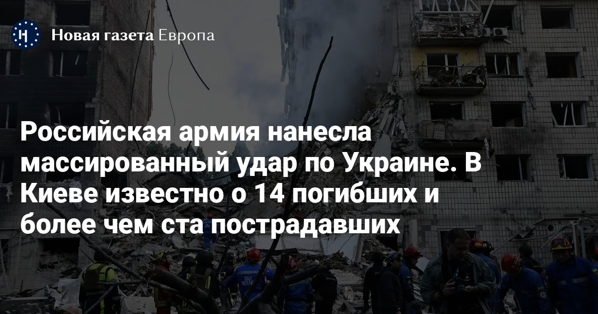 В Киеве погибли 14 человек, сообщил в своем телеграм-канале мэр украинской столицы Виталий Кличко. По его словам, к врачам после массированной атаки обратились 114 пострадавших, 68 из них были госпитализированы, остальным помощь оказали на месте.
