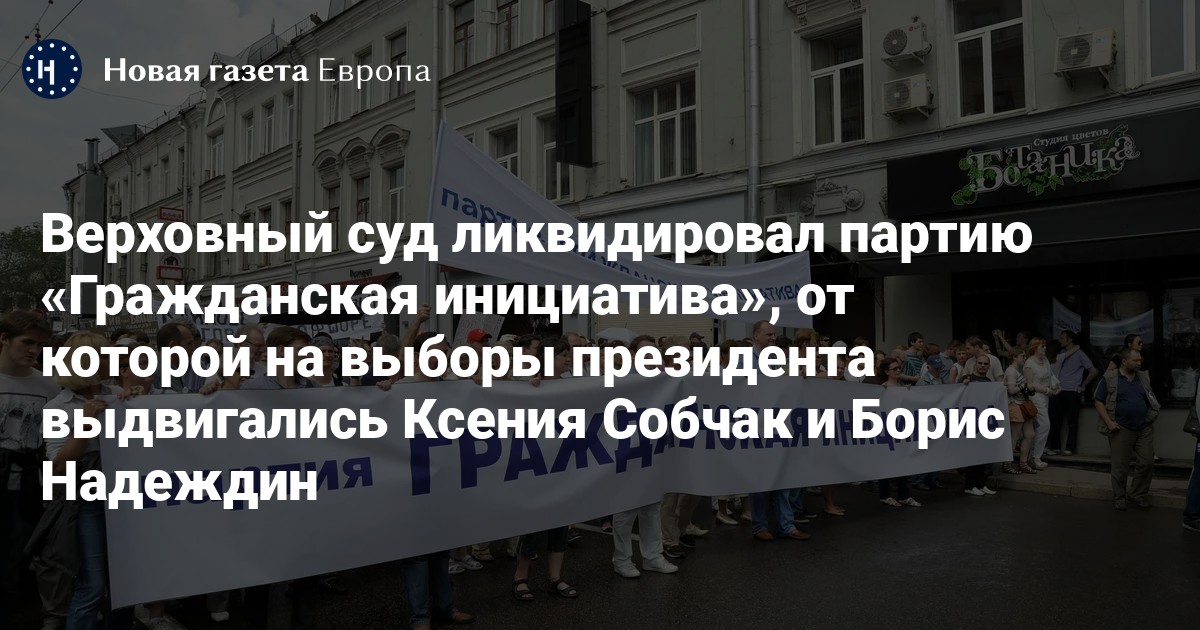 Верховный суд России удовлетворил иск Минюста о ликвидации партии «Гражданская инициатива». Об этом сообщили в телеграм-канале партии.