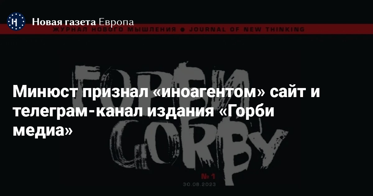 Минюст РФ внес в реестр «иноагентов» сайт и телеграм-канал издания «Горби медиа». Об этом сообщается в пресс-релизе ведомства.