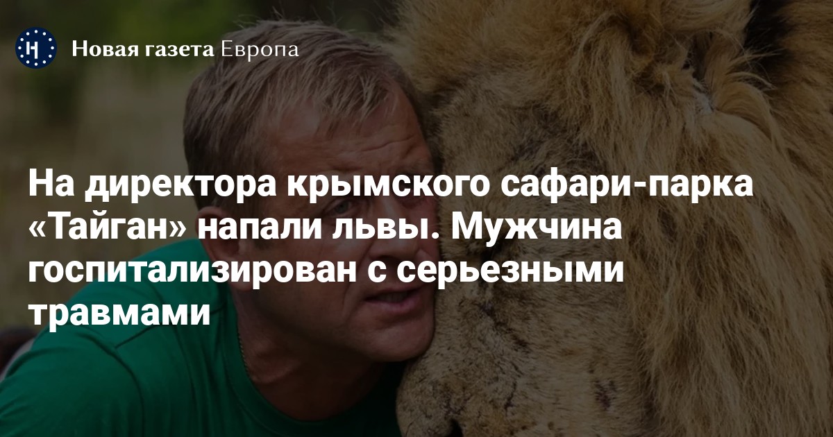 На директора сафари-парка «Тайган» в аннексированном Крыму Олега Зубкова напали львы в момент их кормления. Первыми об этом сообщили местные СМИ, позже информацию также подтвердили в Следственном комитете (СК).
