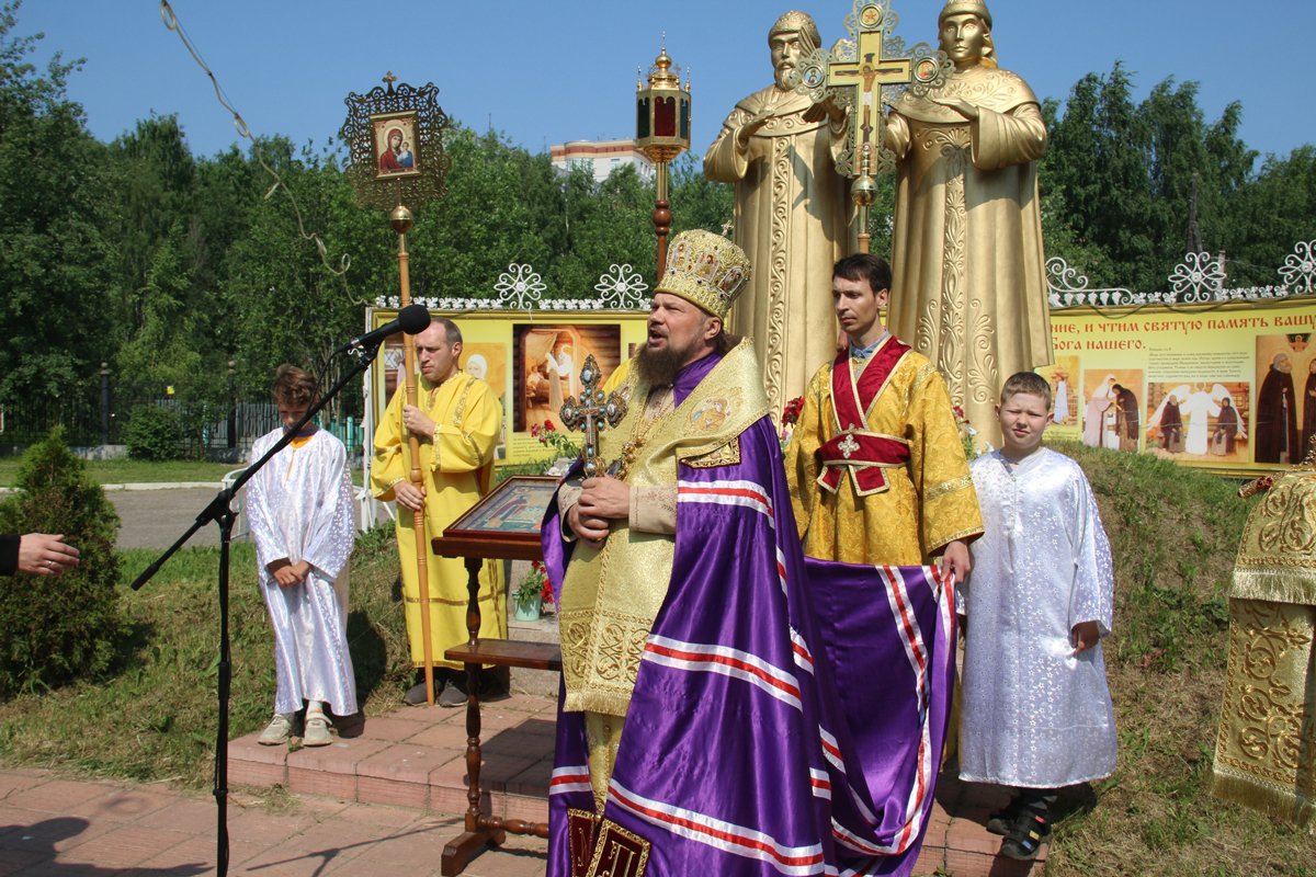 Богослужение у памятника святым Петру и Февронии на территории Свято-Стефановского собора. Фото с личной страницы Питирима в VK