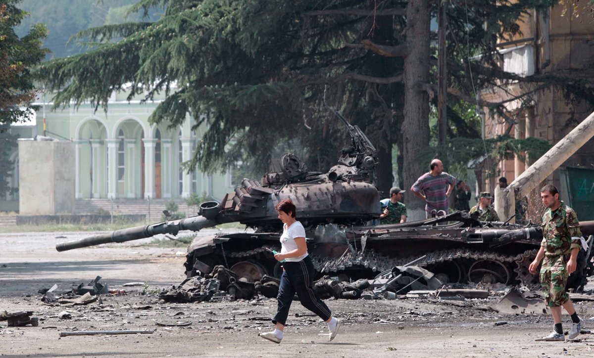 Уничтоженный грузинский танк в Цхинвали, Южная Осетия, Грузия, 11 августа 2008 года. Фото: Юрий Кочетков / EPA