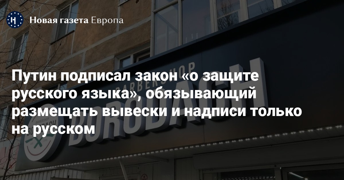 Владимир Путин подписал закон «о защите русского языка», обязывающий размещать вывески и надписи только на русском. Документ опубликован на официальном интернет-портале правовой информации.