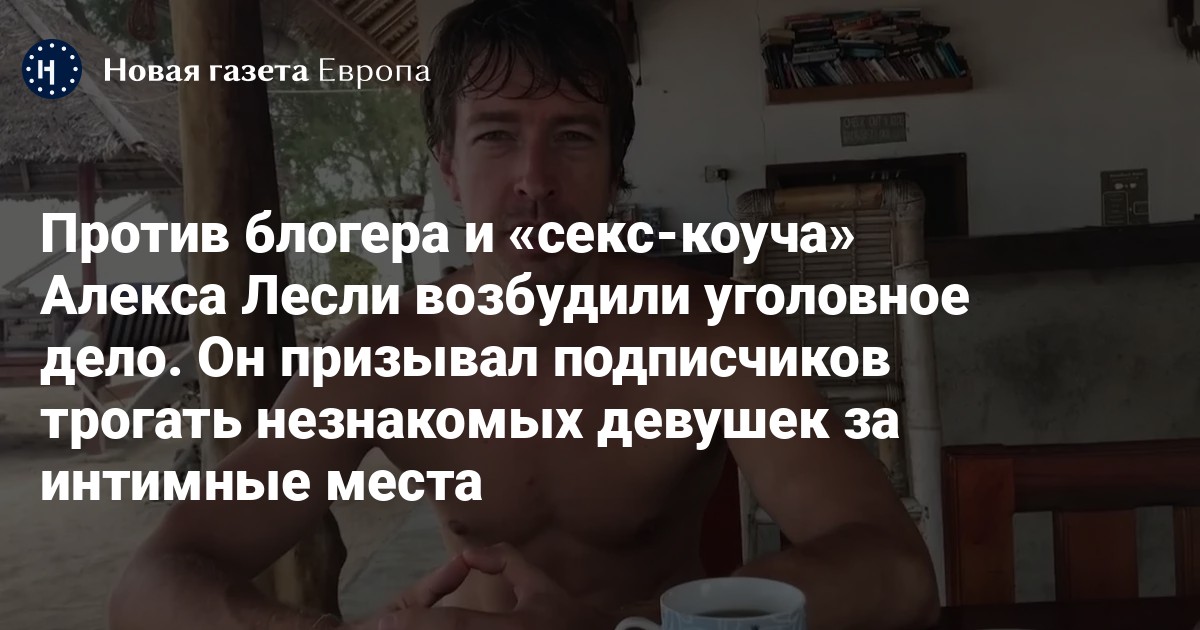 20 июня Алекс Лесли объявил в своем телеграм-канале о начале «телесного тренинга» для мужчин и опубликовал ссылку на закрытый чат. Блогер предложил своим последователям трогать прохожих девушек за интимные места и предлагать им секс.