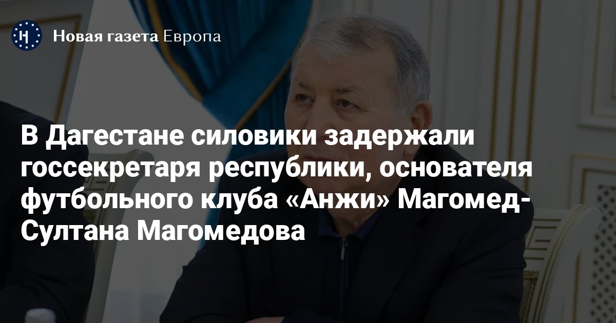 Силовики в Дагестане задержали госсекретаря республики, основателя футбольного клуба «Анжи» Магомед-Султана Магомедова. Об этом сообщили ТАСС и РИА Новости со ссылкой на источники в силовых структурах.