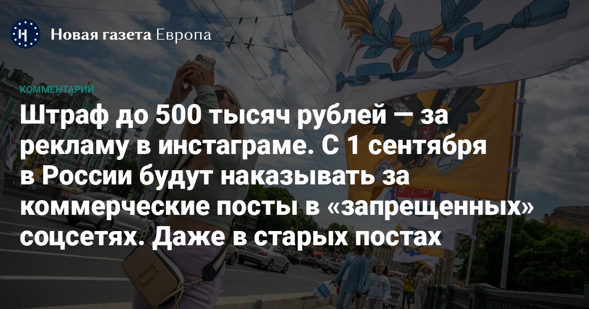 С 1 сентября 2025 года в России будет запрещено размещать рекламу в Instagram и Facebook. Штрафовать будут как за новые, так и за старые посты. Причем размер штрафа может доходить до 500 тысяч рублей за каждую публикацию.
