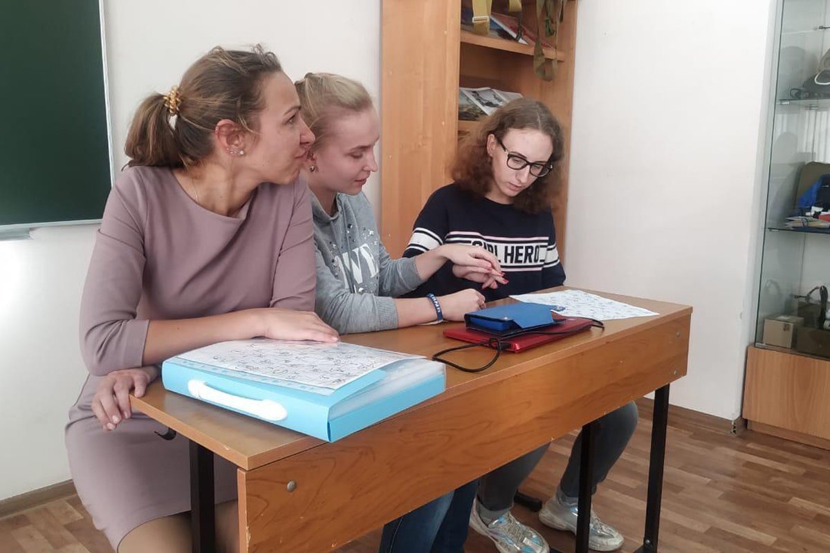 Алена с тьютором Дарьей Ковалевой и студентами на первом курсе