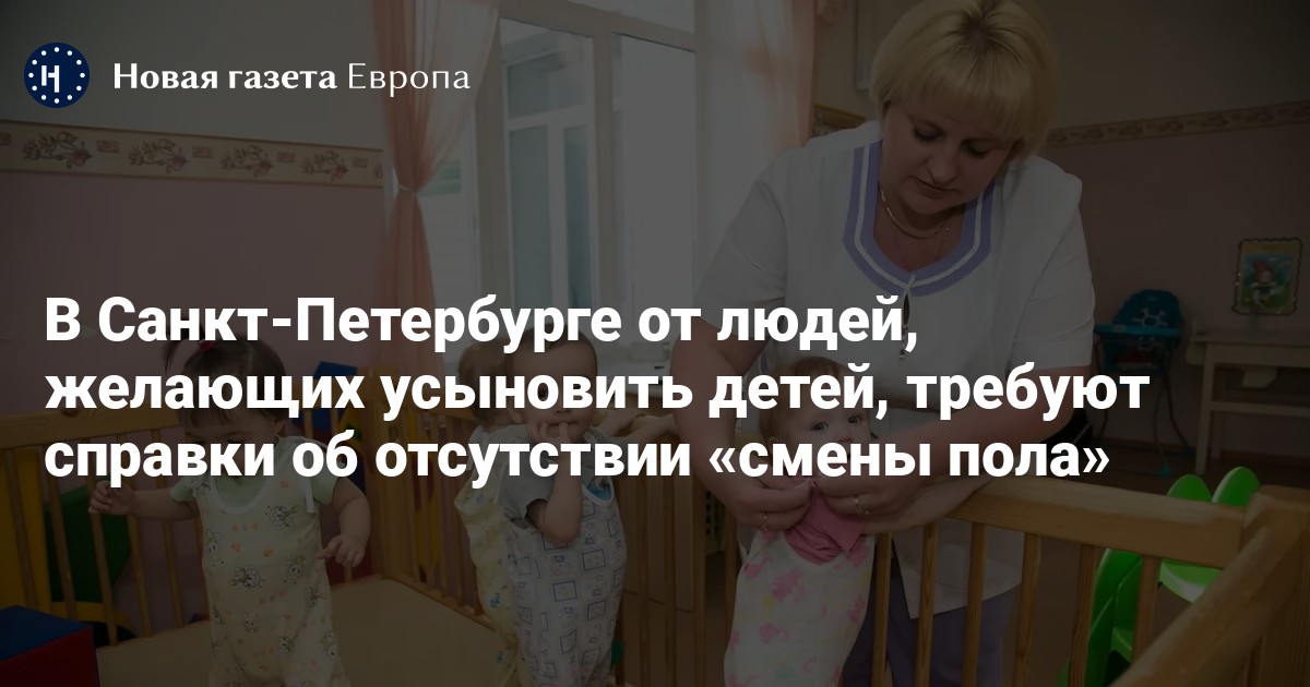 Органы опеки в Санкт-Петербурге стали требовать от людей, желающих усыновить или оформить опекунство над детьми, подтверждение того, что он «не меняли пол». Об этом пишут «Важные истории» со ссылкой на кандидатов в приемные родители и сотрудников органов опеки.