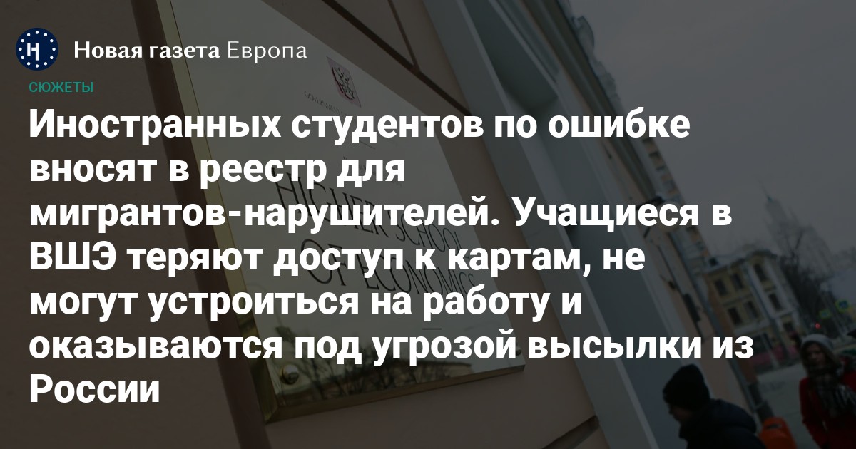 По ее словам, «только из Высшей школы экономики десятки студентов-иностранцев попали в этот реестр». Более того, их имена вносят в список по несколько раз: