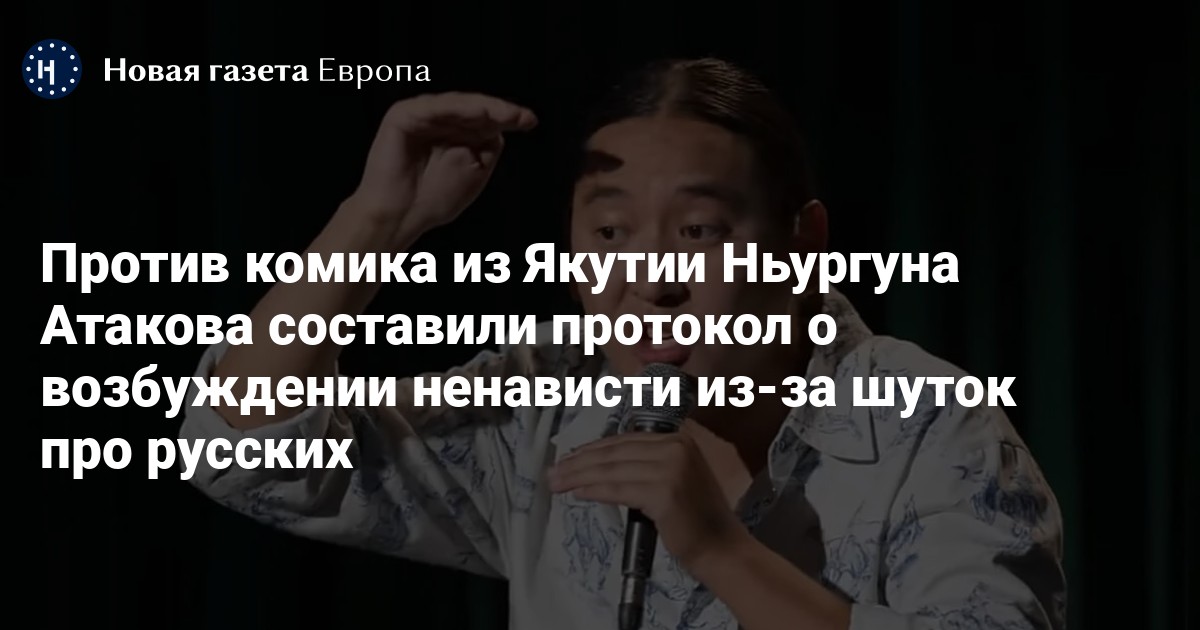 В отношении якутского стендап-комика Ньургуна Атакова составили протокол о возбуждении ненависти или вражды по национальному признаку (ст. 20.3.1 КоАП). Об этом сообщает телеграм-канал «Торбозное радио».