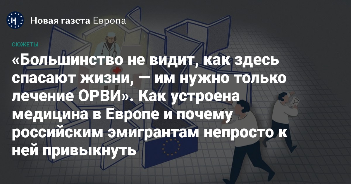 Чем европейская медицинская система отличается от российской и что думают о ней эмигрировавшие в ЕС россияне, которые уже успели полечиться здесь от аллергии, простуды и намного более серьезных заболеваний, — разбиралась корреспондентка «Новой-Европа» Юлия Ахмедова.