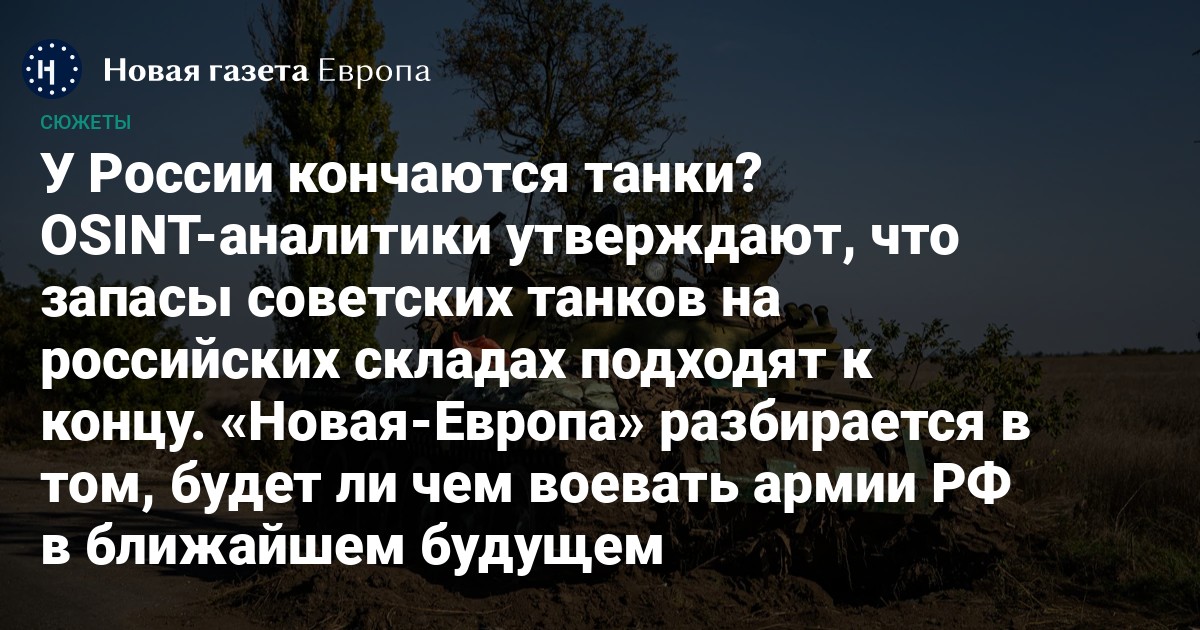 Ютуб-канал «Быть или» со ссылкой на западных OSINT-аналитиков, изучавших спутниковые снимки, рассказал, что на российских складах на данный момент осталось лишь 251 единиц танков в хорошем состоянии, 1804 танков — в плохом, а также 1287 танков, которые могут пойти лишь на запчасти.