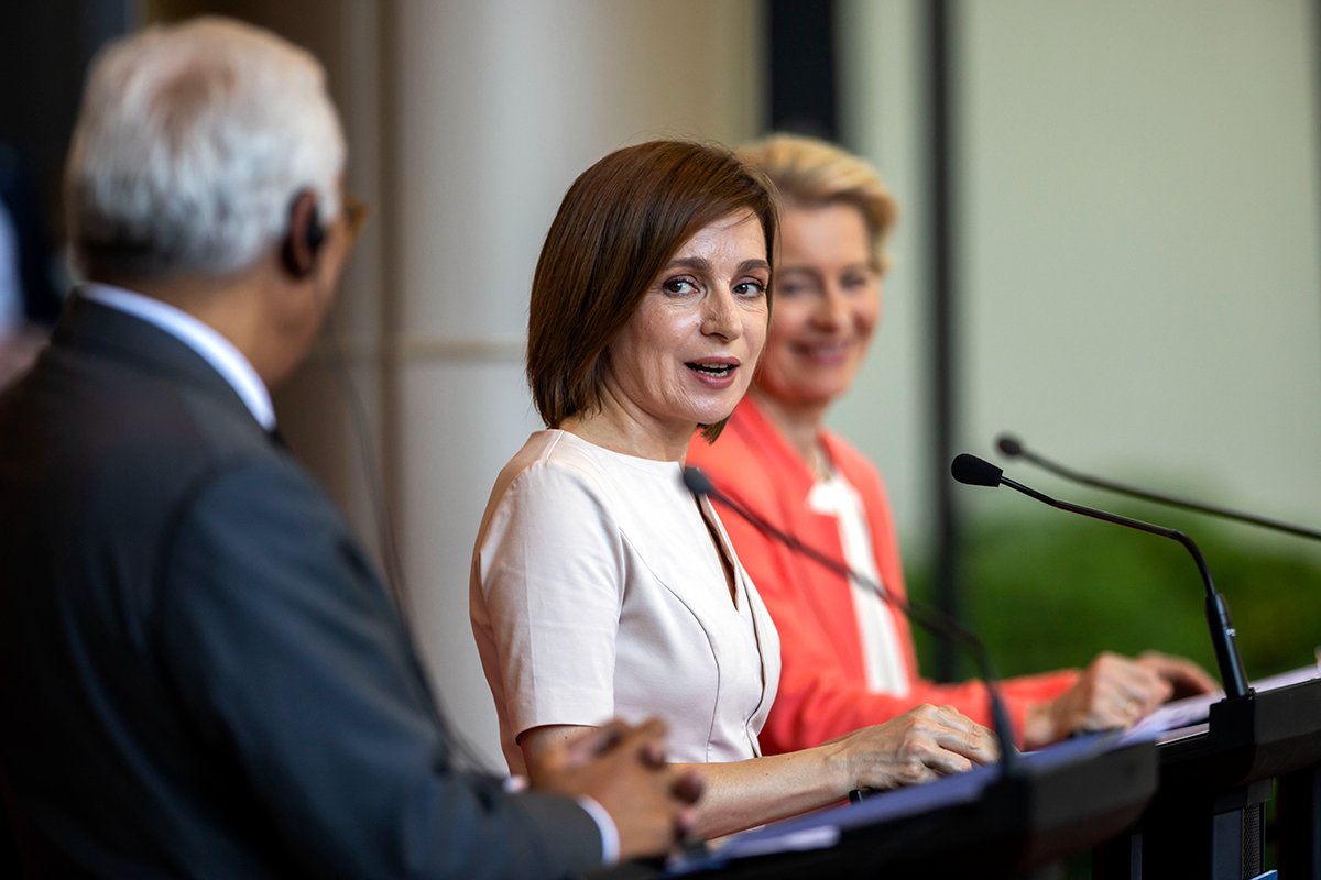Первый в истории Молдовы двусторонний саммит с ЕС прошел быстро и скромно. Всё заняло три часа. С молдавской стороны в нём участвовали президент Майя Санду, премьер Дорин Речан и спикер парламента Игорь Гросу. Торжественность момента подчеркивал лишь почетный караул и красная дорожка перед государственной резиденцией в центре Кишинёва, где молдавское руководство принимало Урсулу фон дер Ляйен и Антониу Кошту.
