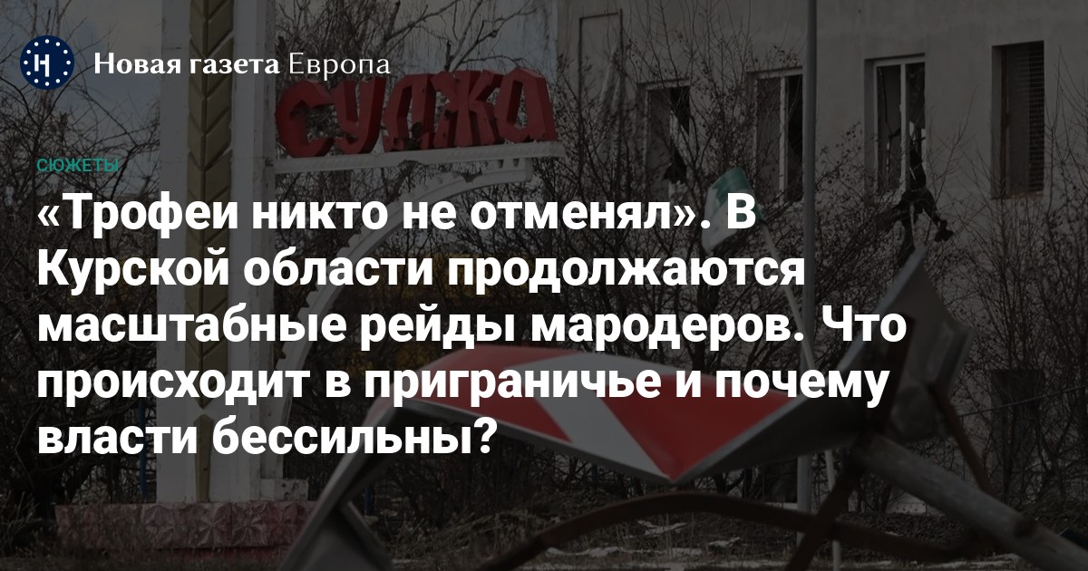Впервые о массовых грабежах в Курской области заговорили еще в августе 2024 года, когда двое чеченцев обчистили филиал «Мегафона» в Глушково. Еще один случай произошел в селе Званное, где солдаты дважды обнесли пункт выдачи заказов маркетплейса Wildberries. Первое время власти называли подобные сообщения «информационным вбросом противника», но по мере того, как люди возвращались в свои дома, становилось ясно: мародеры заходили едва ли не в каждый дом. Пришлось уже и официально признать, что многочисленные слухи — правда, а за нападениями на дома суджан и кореневцев стоят «не только гражданские, но и военные» российской армии. В ноябре жители приграничных сел, возмущенные масштабами краж, даже обращались к Путину с просьбой восстановить справедливость: