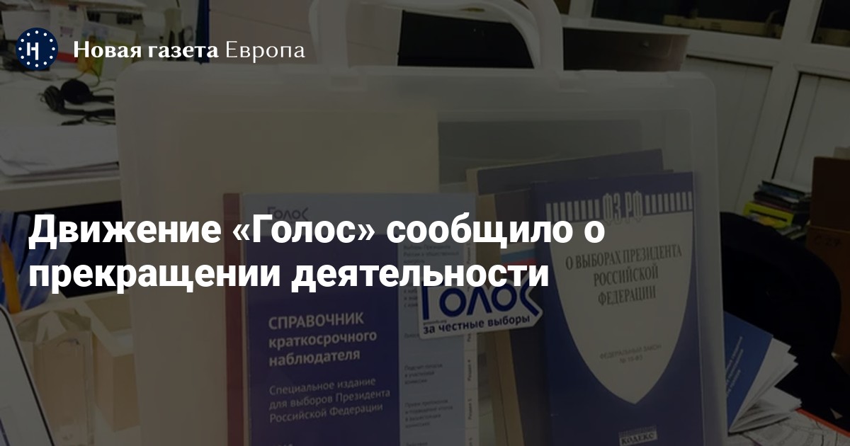 Общероссийское общественное движение в защиту прав избирателей «Голос» объявило о прекращении работы. Соответствующее заявление появилось на сайте проекта.
