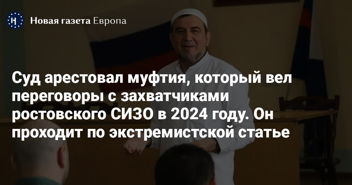 Ленинский районный суд Ростова-на-Дону арестовал муфтия Ахмеда Абусупьянова, который вел переговоры с захватчиками ростовского СИЗО-1 в июне 2024 года. Об этом сообщает 161.RU со ссылкой на пресс-службу судов региона.