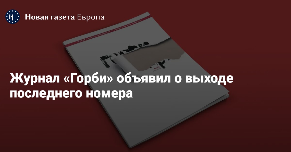 Журнал «Горби» сообщил о выпуске последнего номера. Соответствующее заявление сделал главный редактор Андрей Липский.