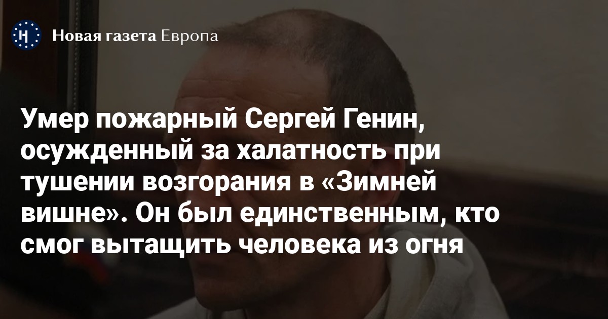 В Кемерове скончался пожарный Сергей Генин, осужденный по статье о халатности при тушении возгорания в торговом центре «Зимняя вишня» в 2018 году. Об этом пишет ТАСС со ссылкой на окружение мужчины.