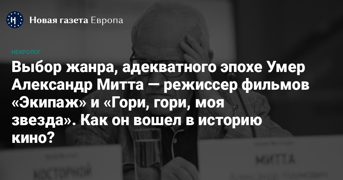 Умерший на 93-м году жизни режиссер, актер, педагог и литератор Александр Митта принадлежал поколению Тарковского и Муратовой, Панфилова и Климова. Он был старше даже Германа-старшего. Среди сверстников Митты было принято претендовать на заметную роль в искусстве и сравнивать себя с крупными зарубежными авторами. По некоторым свидетельствам, Митте эти сравнения были не нужны, поскольку, как я думаю, авторское кино ему было безразлично.